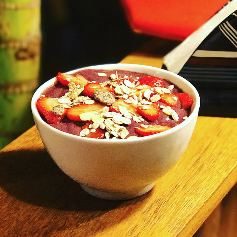 Best Tip! Our amazing Açaí bowl with a choice of fresh fruit toppings and granola, this super healthy and tasty frozen treat is the best you will taste in Brazil!